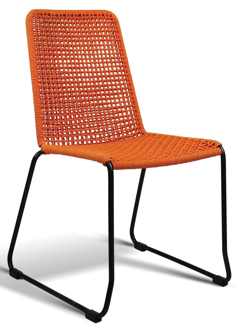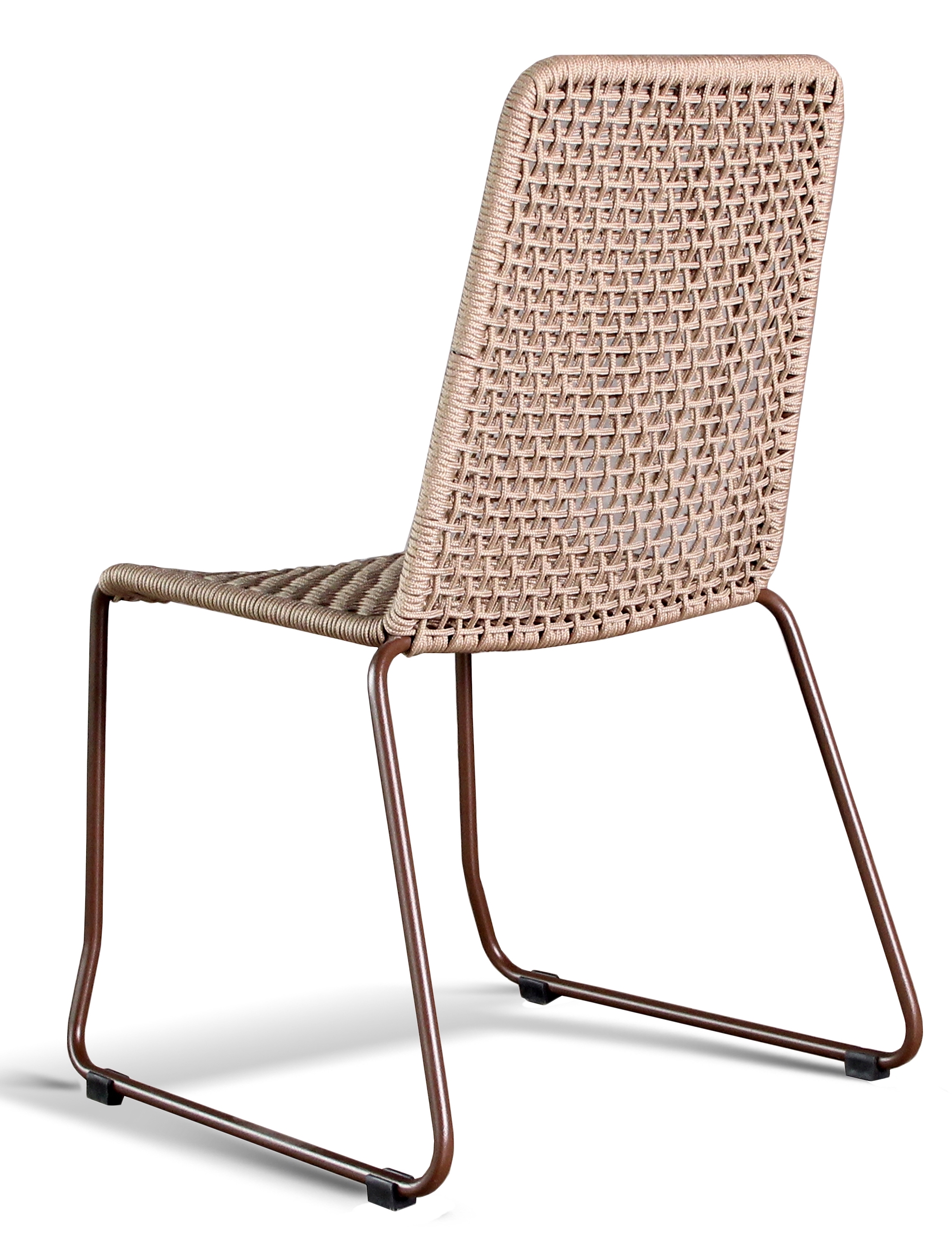 The Knot Outdoor Restaurant and Patio Side Chair is constructed with a Polypropylene and Polyester Rope Box Weave seat and back.